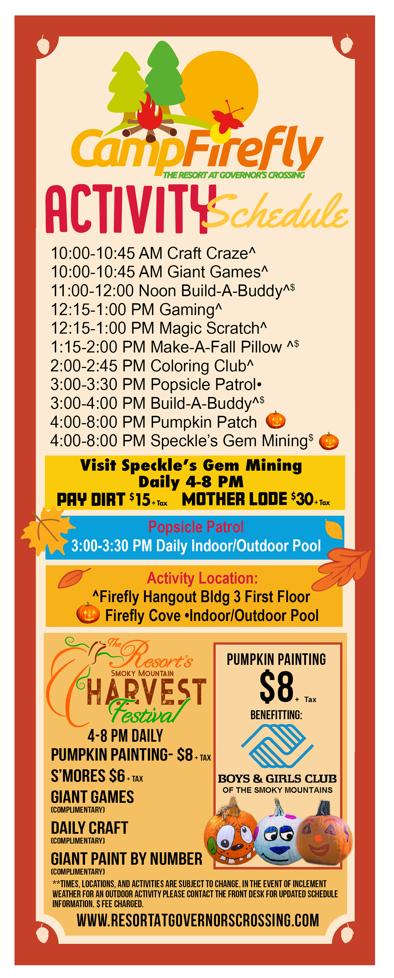 Join in on exciting activities and make new friends when you join Camp Firefly! Perfect for the whole family, our activity schedule brings everyone at The Resort together for exciting activities that range from crafts to outdoor movie screenings.