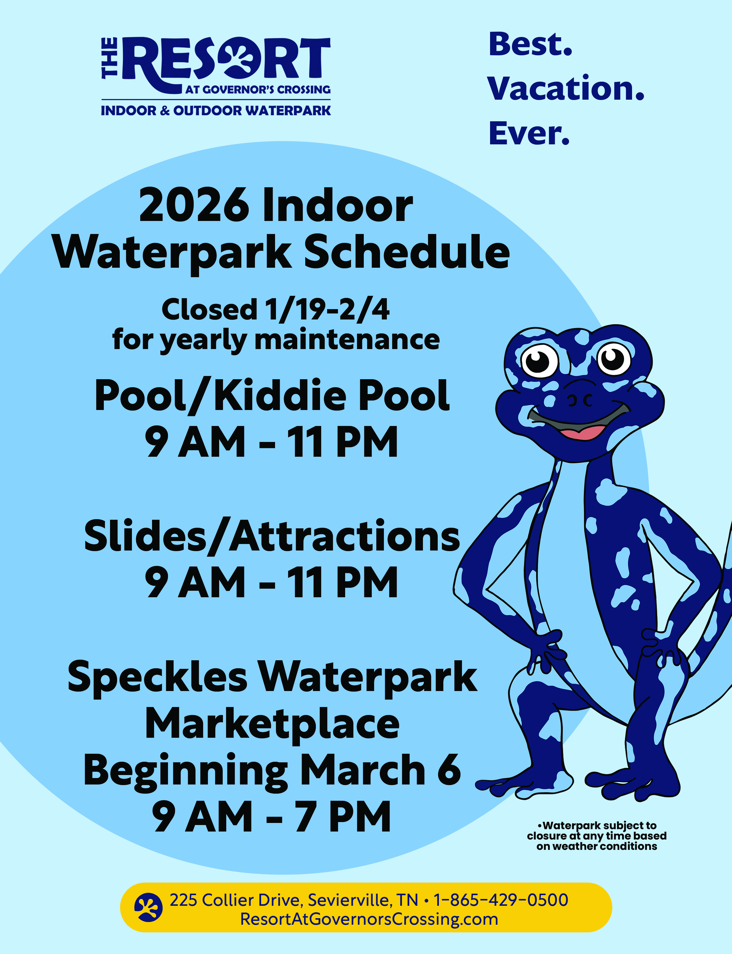2026 Indoor Waterpark Schedule